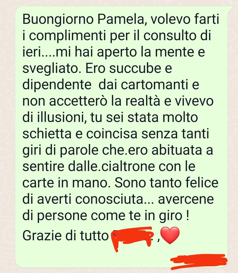 So che fidarsi non è facile – specie in questo settore – molti, prima di contattarmi, avevano lo stesso dubbio… poi hanno deciso di contattarmi e hanno visto la loro vita cambiare. Le loro parole raccontano ciò che la ragione non spiega, ma che il cuore riconosce.